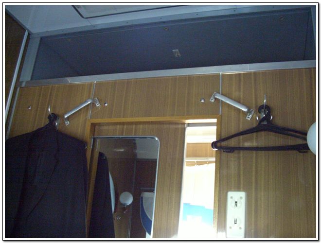 객차와 객차 사이에 있는 화장실. 간혹 어떤역에서는 열차 주유를 위해 30분 가까이 문을 잠궈놓을때가 있다. 이때 배가 아프면 낭패를 볼 수 있다.